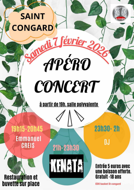 Apéro Concert à Saint Congard avec Emmanuel Creis, Le groupe Kenata, puis DJ. Entrée 5€
