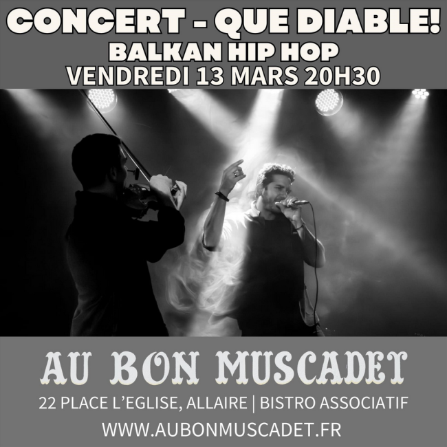 Lorsque la poésie d'un rappeur à la voix chaude se mêle à celle d'un violon envoûtant, il n'y a plus qu'un pas de l'asphalte aux Balkans, pour une création urbaine et sauvage. Et pour le reste: Que Diable! Il faut juste se laisser porter.
