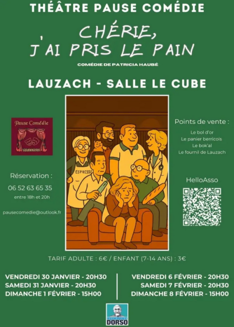 Venez découvrir « Chérie, j’ai pris le pain » de Patricia HAUBE. Une comédie pleine de quiproquos : un mari disparu qui réapparaît, un squelette retrouvé, un inspecteur maladroit, un chat envahissant… bref, des situations délirantes qui promettent de bons moments de rire !