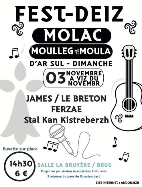 03/11/2024 - 14:00 - 03/11/2024 - 19:00 Groupe local Fariell, au duo Pourchasse/Ar Gall, le groupe bien connu Ferzae et enfin un autre duo de chanteuses Koulma/Loeiza. Merci à eux de se joindre à nous. 47.732508953214, -2.4378496